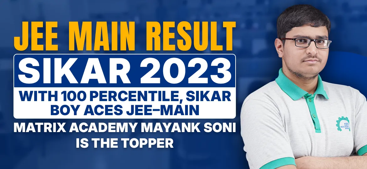 With a score of 100 percentile (295/300), Matrix Sikar student Mayank Soni has topped the Joint Entrance Exam (JEE) – Main session 1, the result for which was declared on Monday. While Krish Gupta from Allen Sikar became the second topper with 100 percentile (280/300), Mohit Modi from Matrix Academy became the third topper with 99.98 percentile, and Aman Nehra from Matrix Academy became the fourth topper with 99.97%ile.